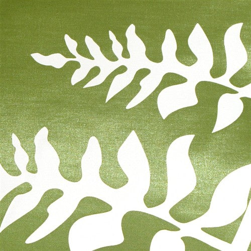 Bold, graphic and contemporary botanical print of ferns on a smooth, shimmery fabric. The dramatic fern design pops out in contrast. Coordinates easily with the other patterns in the series. Pair up the color with its reverse print for a stunning effect.