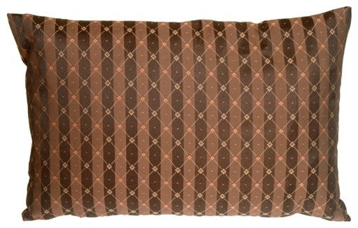 Achieve a clean and classic look with this versatile throw pillow. A delicate diamond pattern in orange, cream and light brown is overlayed on top of striking brown and espresso black striped background. This pillow lends itself to a wide range of decorative styles. It can be used to dress up a formal living room but would be just as at home in a family room, den or bedroom.