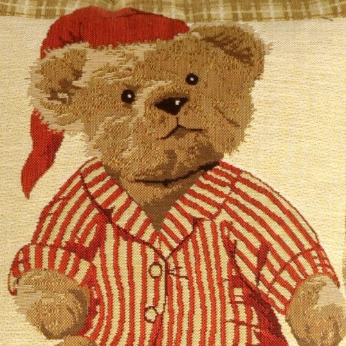 Ready for bed time in his striped pajamas and red cap, this jaunty bear is framed by a caramel colored tartan border. The rich detail of his furry coat reveal the fine quality of this Flemish tapestry. Imported from Belgium, this pillow is the ideal choice for a nursery, child''s room, or a special corner of grandma''s house where the young ones gather.Features:-13" x 13" Pillow-Front and Back: Flemish Tapestry featuring a Teddy Bear-Concealed Color Matched Zipper Closure-Dry Clean Only-Filling: Polyester Fiber Fill • Pillow dimensions always refer to the pillow cover''s width and length while lying flat unstuffed and are rounded up to the nearest whole inch.