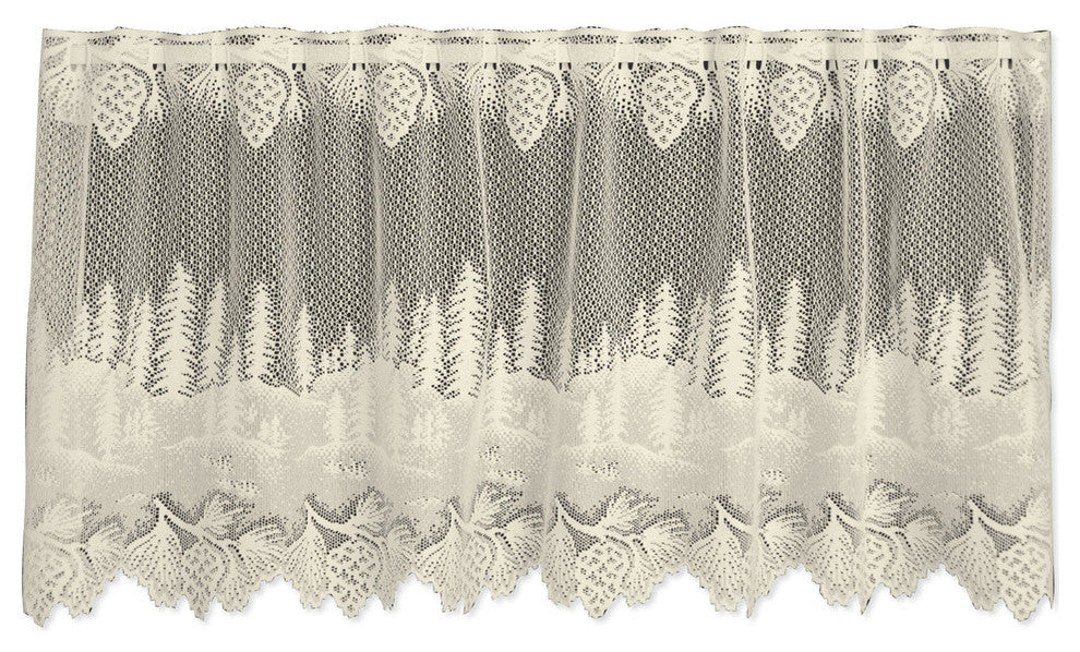 Create a snug northern retreat with mountains, trees -- and everywhere, pinecones in the snow. Silhouettes of snowy ridges and forests, with an appealing border of pine cones, convey the cozy warmth and comfort of a wilderness lodge. Machine wash. Made in U.S.A.