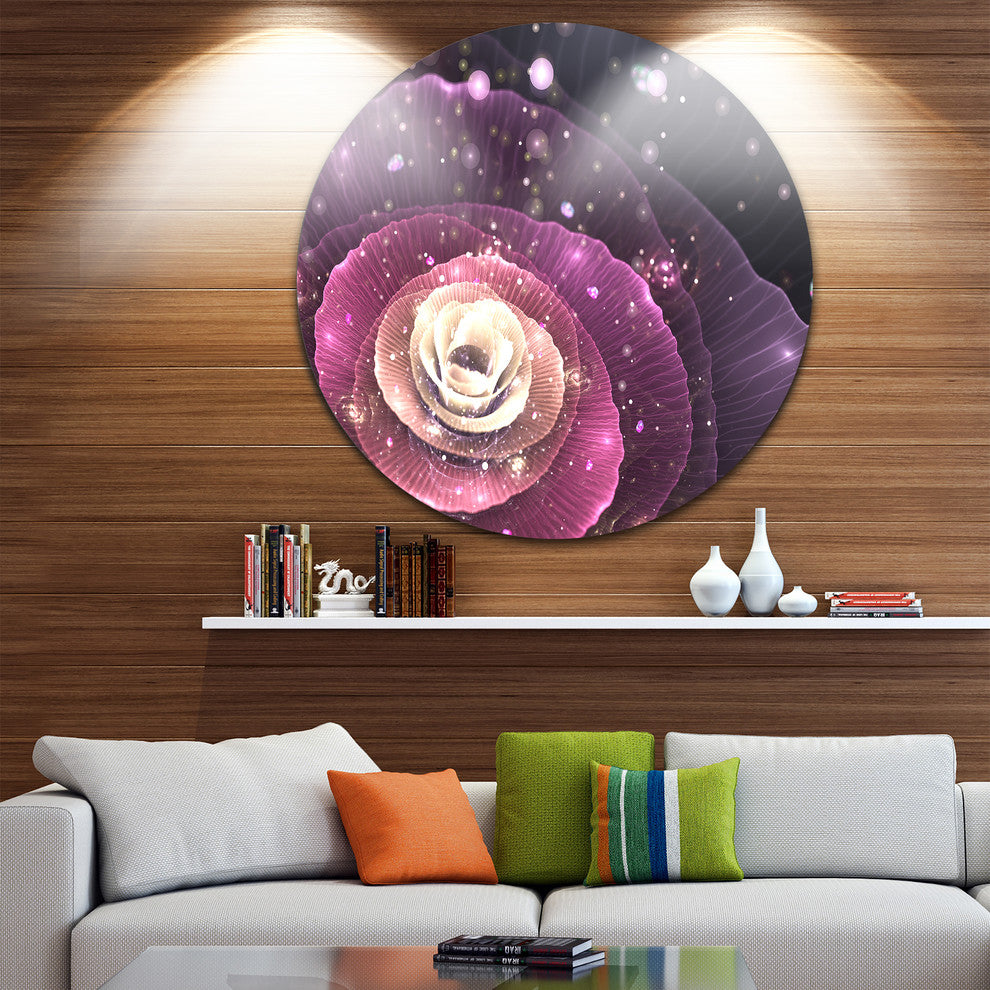 Pink Flower With Sparkles, Floral Digital Art Round Wall Art, 38"