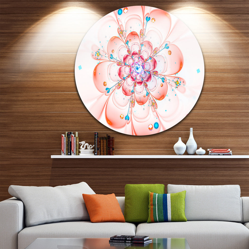 Bring Contemporary Abstraction to your home with this large Circle Metal wall art. This Pink Fractal Flower Petals Close-up Metal Artwork makes it the focal point of any room or office.
