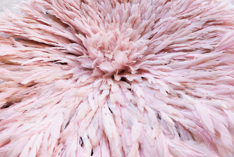 This artful Juju Hat, the Tyn Hat is handcrafted in Cameroon. For centuries, Bamil tribes have been making those hats that symbolize prosperity and freedom. Once, Juju Hats were worn by medicine men and royalties during tribal ceremonies. Nowadays, their customs are less restricted during Bamil traditional rituals and their beauty has reached homes beyond Cameroon, borders. Those headdresses are very impressive hung on walls. Juju hats are made from natural or dyed feathers and woven raffia. Artisans take 2 to 3 days to complete one hat.
