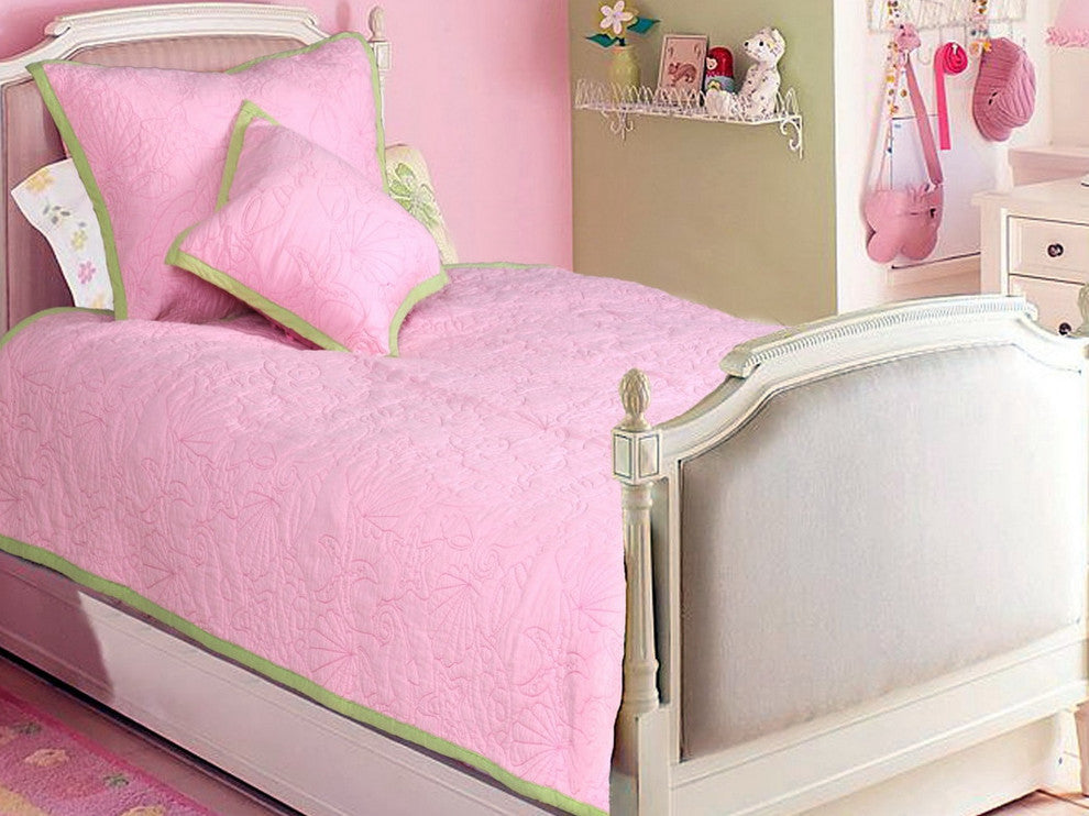Pink Ocean 100%Cotton Twin-Size Quilt Set