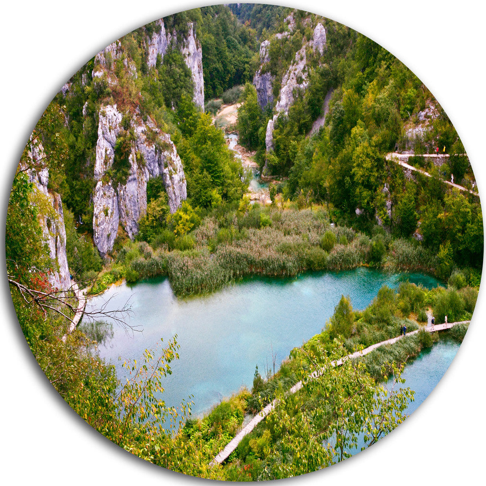 Plitvice Lakes Long View, Landscape Photo Disc Metal Wall Art, 23"