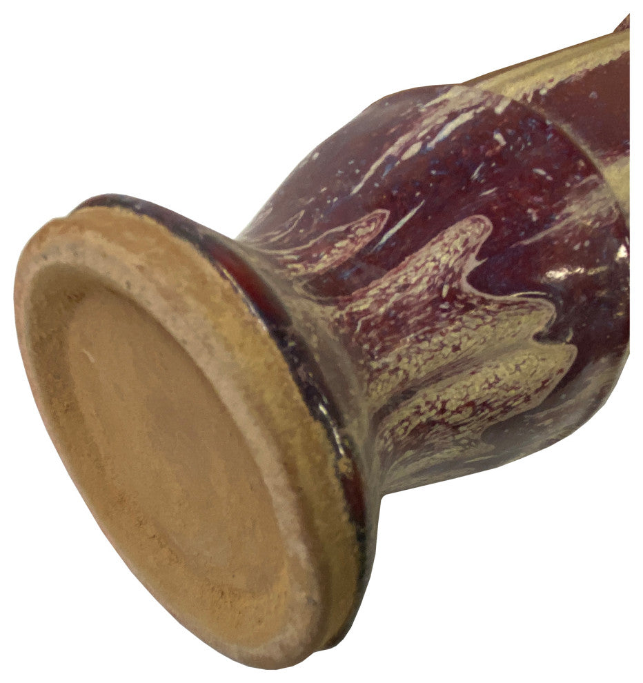 This is a handmade decorative ceramic vase in a distressed plum purple #713443 tan marks mix color finish. It has a narrow tall design with an elephant head accent. Dimensions: Dia 5.5" x h13.5" , center dia 1.5"Origin: ChinaMaterial: CeramicCondition: Handmade, no damage