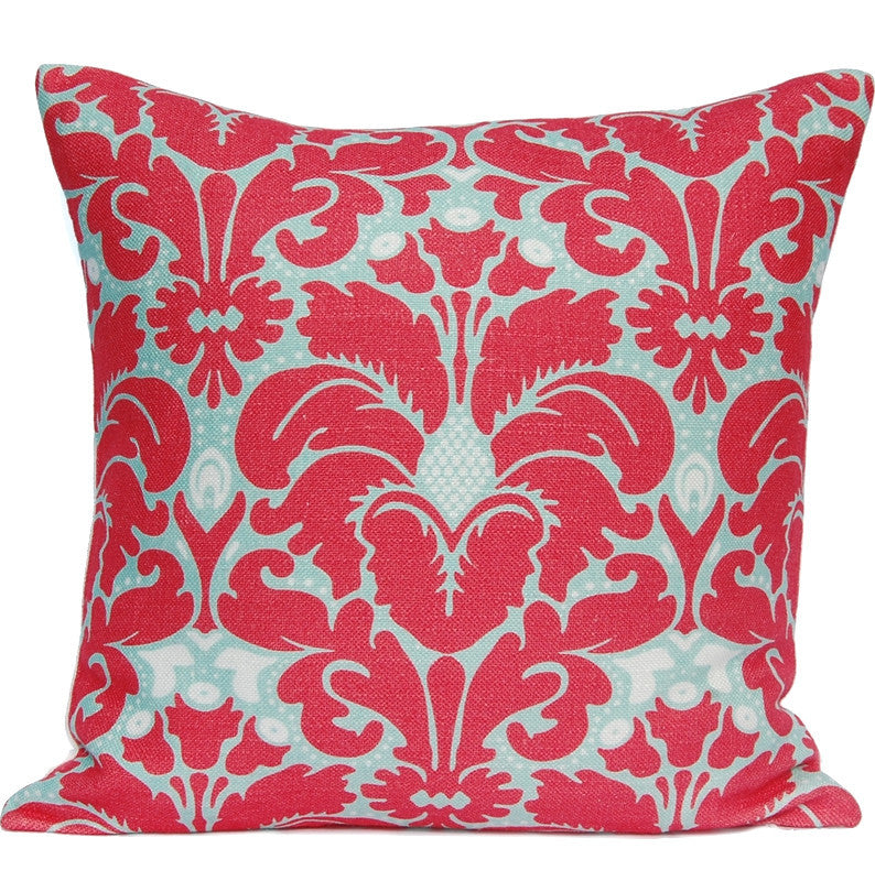 Plumes Damask Pillow, Coral