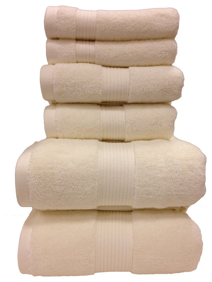 Plush 100% Cotton Towels, 6PC Bath Towel Set, Ivory