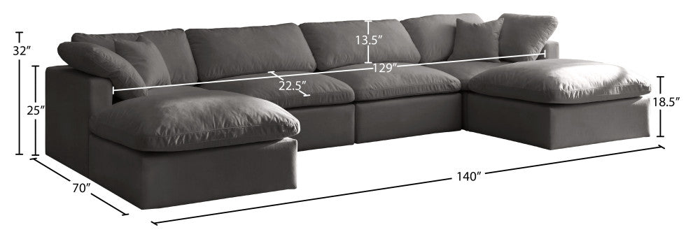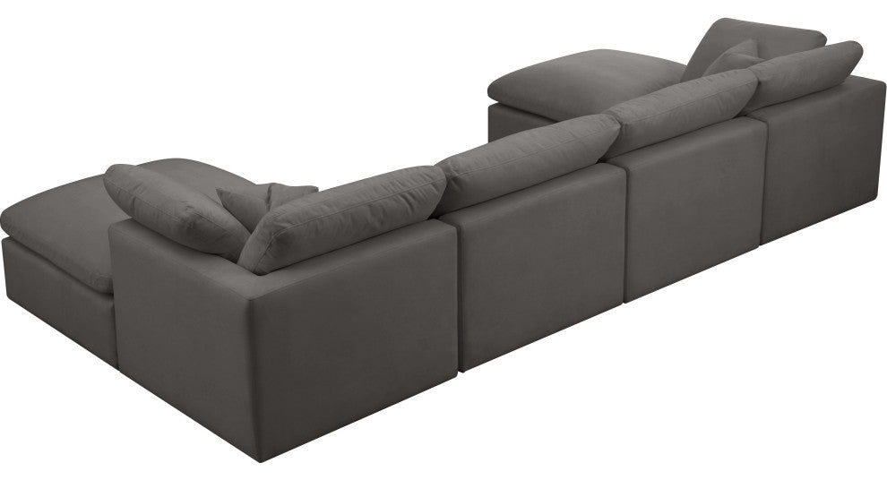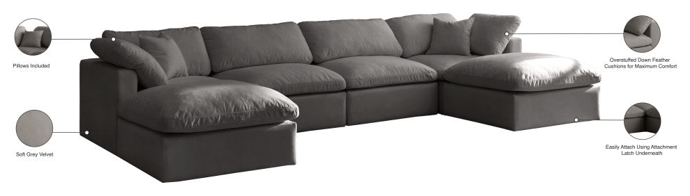Plush Velvet / Down Standard Comfort 6-Piece U-Shaped Modular Sectional, Grey
