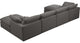 No matter how big or little the size of your gang, they can all find their sweet spot when you choose pieces from the Plush collection to build your ideal seating group. Choose this six-piece set or pair multiple pieces together to get the custom look everyone will love. The soft grey velvet material is soft and welcoming to the touch, and the set''s cushions are overstuffed with a down and feather blend to provide ample support for tired bodies.Overall Product Dimensions: 140" W x 70" D x 32" HCloud-Like ComfortSoft Grey VelvetOverstuffed Down Feather Cushions for Maximum ComfortModular to Create Infinte ConfigurationsOverall Height 35" When Back Cushion Fully UprightContemporary DesignEasily Attach Using Attachment Latch UnderneathSeat Dimensions: Seat Width: 129"Seat Height: 18.5"Seat Depth: 22.5"Arm Height: 24.75"Back Height: 13.5"