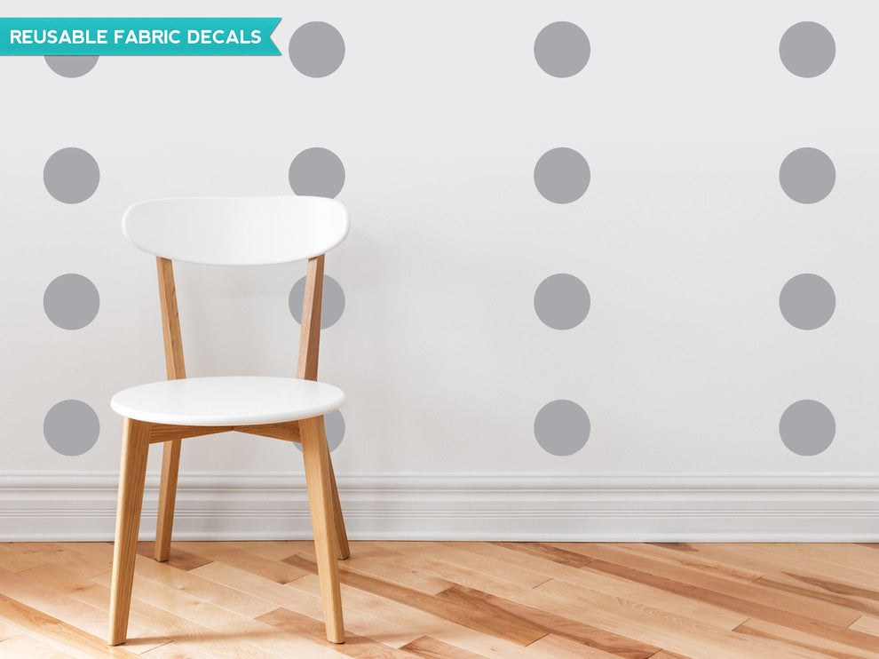 Polka Dot Fabric Wall Decals, Set of 48, 4" Polka Dots, Grey
