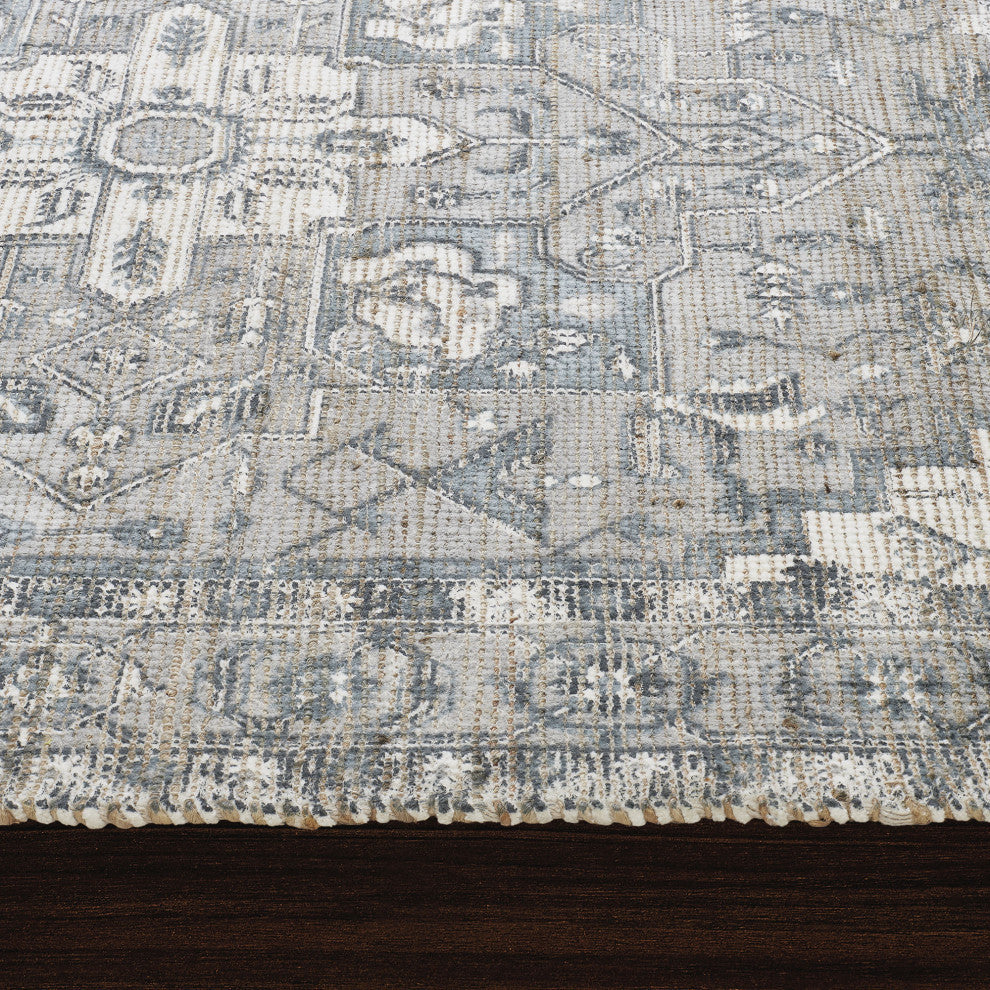 The casual contemporary interior is enveloped by a feeling of ancestry and character through this hand-woven rug design. A blend of cotton and jute, this rug feels comforting and lends a carefree texture to its surroundings. Clients looking for a way to add subtle color and prints to their living room, bedroom, or hallway will find this piece elevates existing elements to new heights.