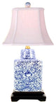 Porcelain Blue and White Twisted Lotus Tea Caddy Lamp 18"