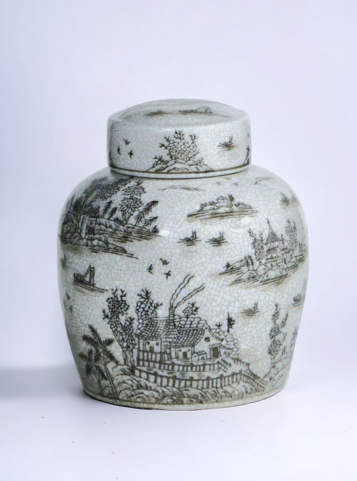 Porcelain Ginger Jar With Chinoiserie Design
