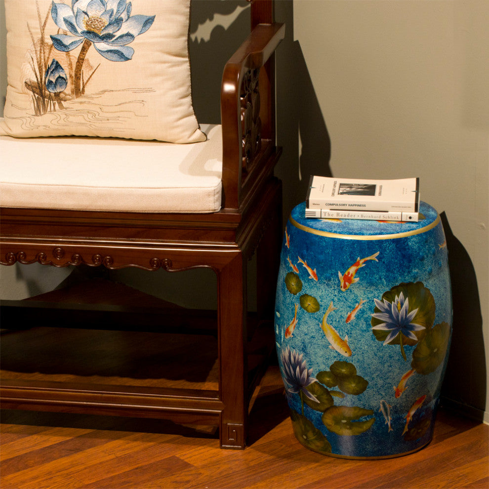 Porcelain Koi Fish Lotus Pond Motif Asian Garden Stool