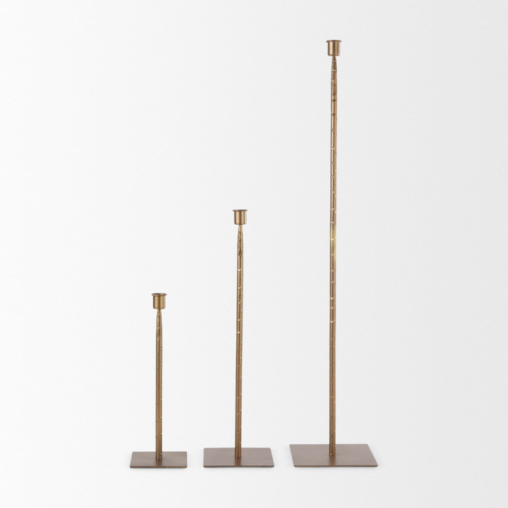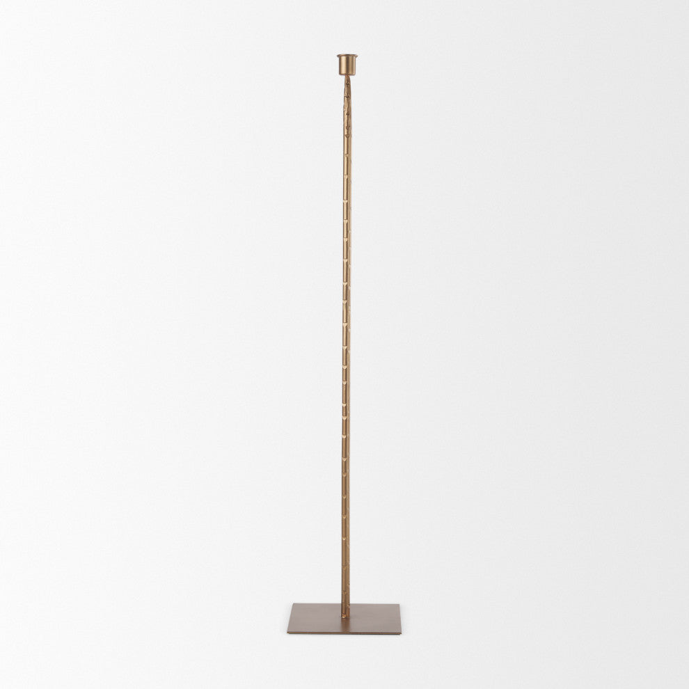 The Porter Candle Holder in textured iron with a gold finish is a trendy, rustic and industrial design. Mix and match with the Porter Collection to create visual interest with varying heights of these large scale candle holders.
