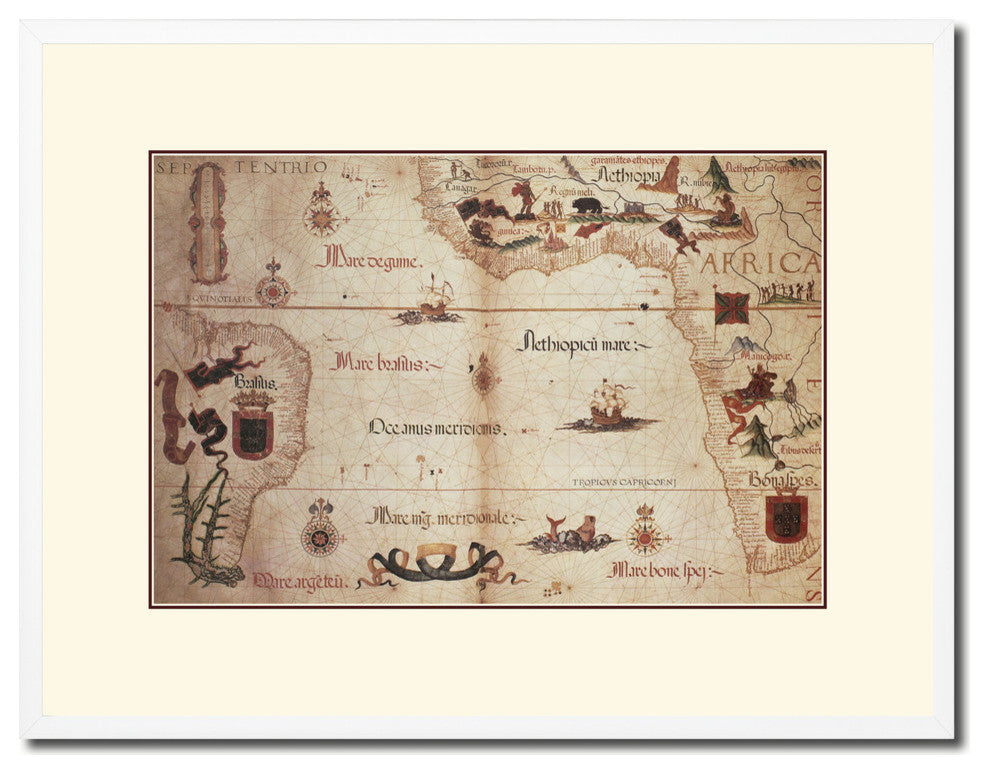 Portolan Chart Old Map Print On Canvas With Frame Art Collection 16" X 21"
