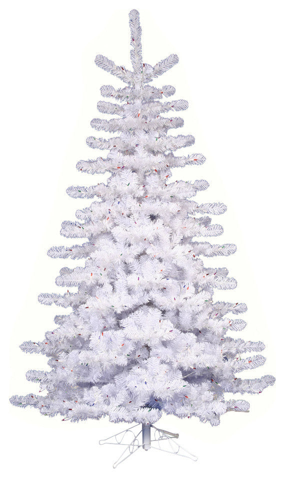 14 Foot Lighted Crystal White Artificial Christmas TreeItem #A805797Features beautiful bright white branches with 1" long needles, this tree provides an elegant backdrop for your ornaments and decorations.Product Features:7596 Tips2600 Multi-Colored mini lightsIf one bulb goes out the rest will stay litHinged-branch constructionComes with a Free white metal tree standUL listed for indoor use onlyWhite lead cordDimensions: 14 feet highApproximate base diameter: 90 inches (at widest point) Material(s): PVC/Metal