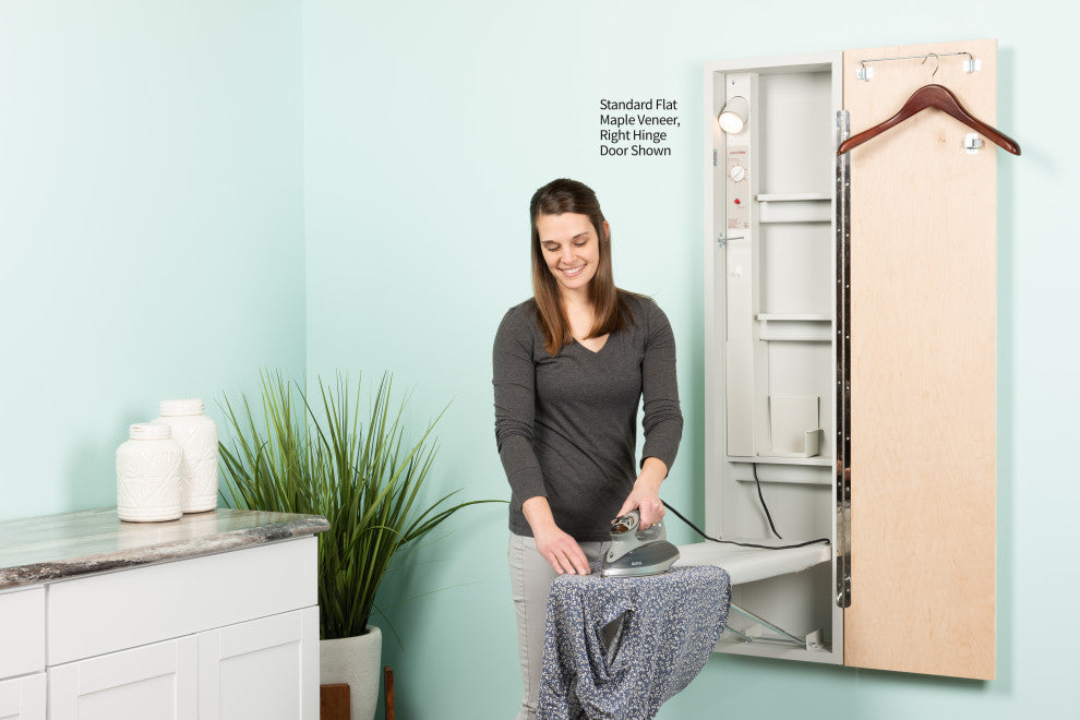 Premium Fixed Position Electric Ironing Center, Flat Maple Veneer Door