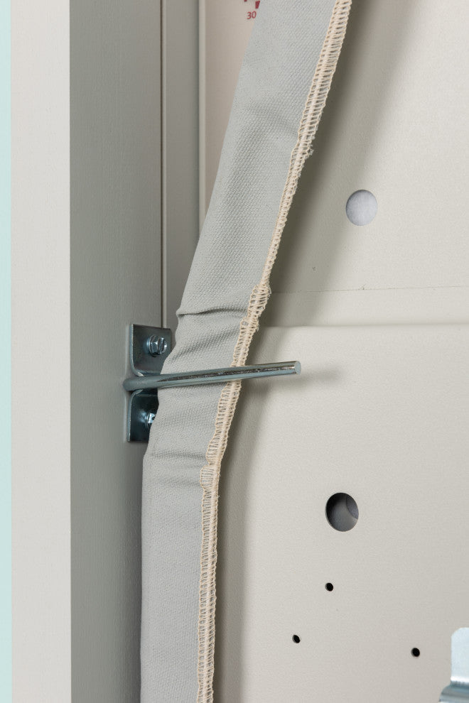 The premium length board coupled with the ventilated top provides an excellent surface for steam ironing. The sturdy double telescoping steel support legs provide for outstanding stability. The sixty-minute motor timer turns on power to the built-in work light and the electrical outlet. The electrical cord cover and restraints help guide the cord over the board, eliminating potential snags. You can leave you iron plugged in at all times and when finished, store it while hot. A built-in safety switch disconnects all power when the board is returned to the upright position. The increased hot iron storage compartment allows for storage of most irons.