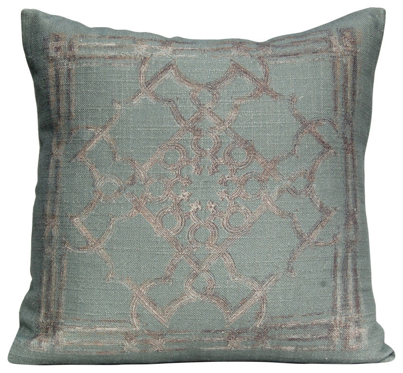 Dimensions: 21"L x 21"W50% Cotton/30% Linen/20% Viscose cover5% Down/95% Feather fillerHidden zipperDry clean onlySolid off-white fabric on the backNote: Basecloth intentionally contains slubs and imperfections.
