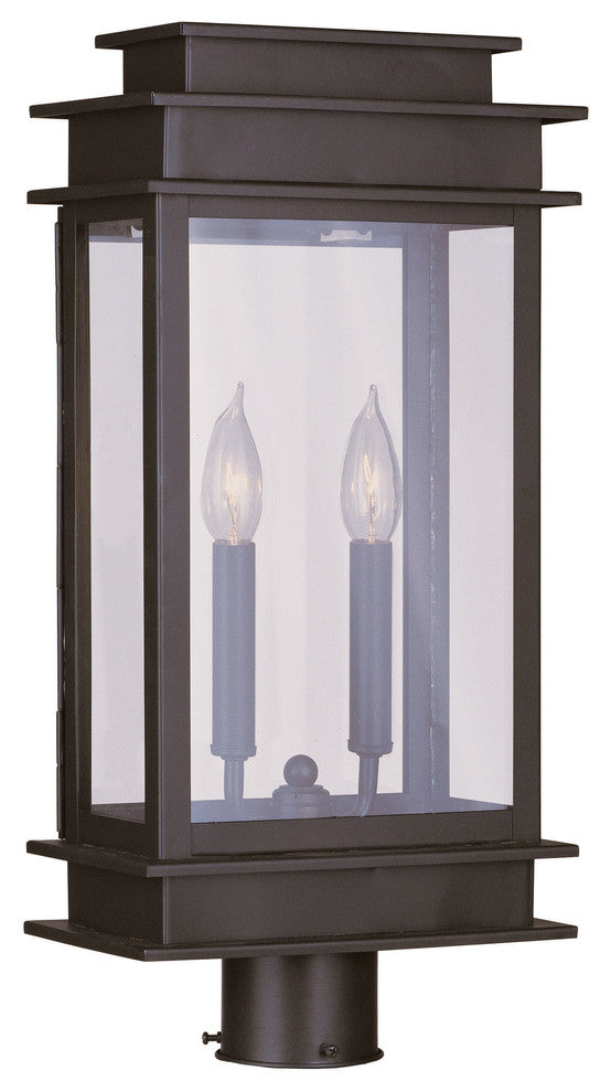 The Princeton collection is a fresh interpretation on the classic English pocket lantern. Hand crafted solid brass, our Princeton fixtures are built for lasting beauty. This outdoor post light features a bronze finish and clear glass. This old world charm is built to last.