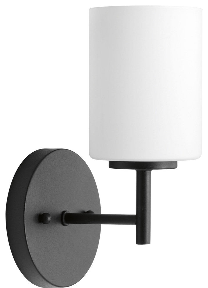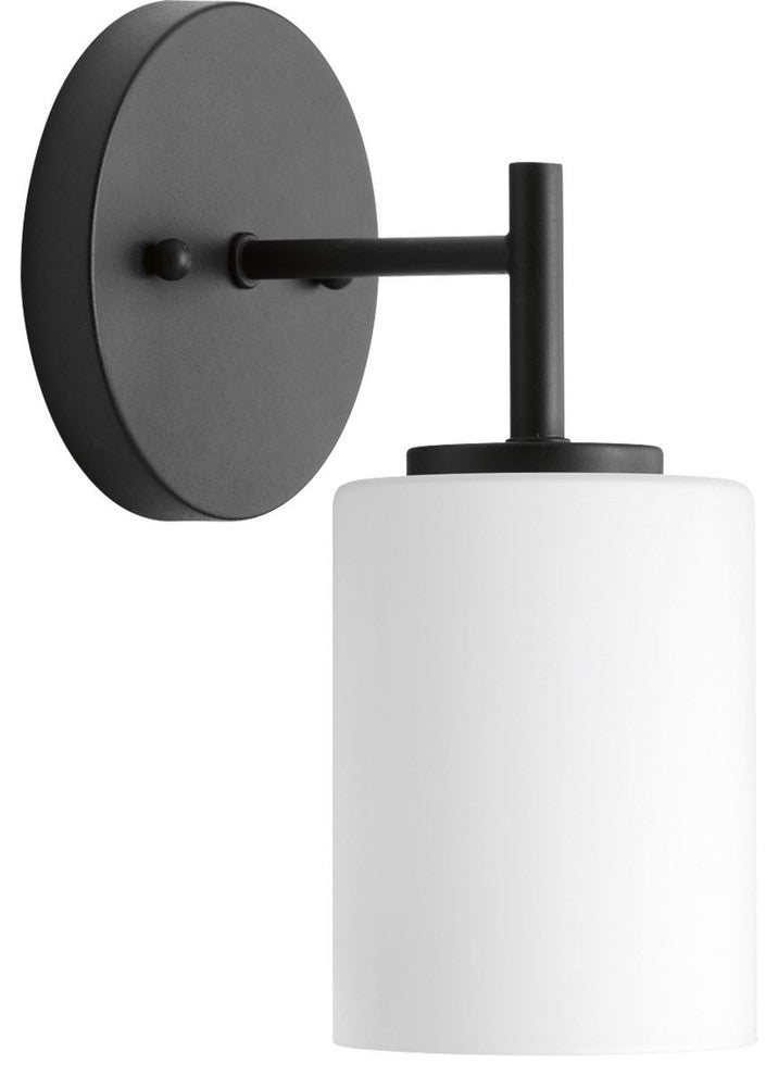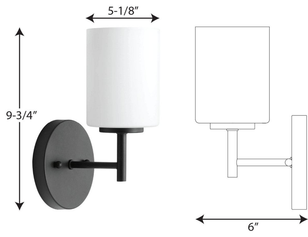 One-light wall bracket from the Replay Collection, smooth forms, linear details and a pleasingly elegant arm enhances a simplified modern look.Finish: BlackBulb Type: Uses Medium BaseBulb Wattage: 100Bulb Quantity: 1Listed: Damp location listedMount Type: WallStyle: Traditional/ClassicRoom Type: Bathroom Lighting and/or Hall & Foyer LightingDimensions: Width/Diameter: 5-1/8"Height: 9-3/4"MOUNTING:Wall mountedMounting strap for outlet box includedMounts in up or down positionBack plate covers a standard 4 hexagonal recessed outlet box5-1/8 dia., 7/8depthELECTRICAL:Threaded socket ring secures glassPre-wired6 of wire supplied120VLAMPING:Quantity: 1100W Medium BaseMedium porcelain socketADDITIONAL INFORMATION:UL-CUL Damp location listed1 year warrantyCompanion Bath and Vanity, Chandelier, Hall and Foyer, Pendant, Wall bracket, fixtures are available