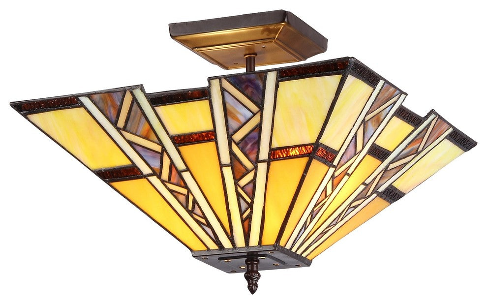 PROGRESSIVE Tiffany-style 2 Light Mission Semi-flush Ceiling Fixture 14inches Sh