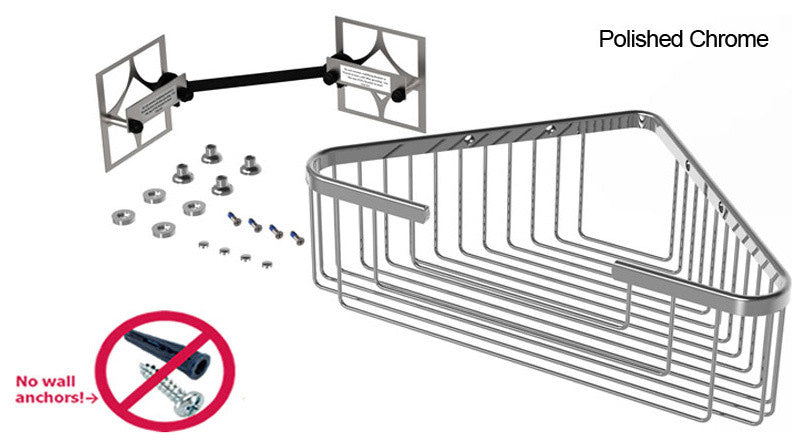 Promessa Extra Deep Corner Soap Basket Brushed NickelDimensions 13 3/4" length x 8" width x 4" depthSolid brass basket, brazed constructionPermaTile Installation Kit Include:•  Includes (1) ready to install, stainless steel, PermaTile fastener•  Includes (2) solid brass standard ferrules for tile thicknesses over 1/4"•  Includes (2) solid brass thin-wall ferrules for tile thicknesses under 1/4 "•  Includes (2) 8-32, stainless steel, phillips-head screws•  Includes (2) decorative plugs One of the largest corner baskets ever produced, simply because of our unique mortar based, PermaTile Fastening System. Baskets of this size and quality are rare because of the limitations associated with traditional penetrating wall anchoring systems. Our extra Deep Corner is a toiletries workhorse that marries beauty with functionality. Designed to help organization all your body care products, even those purchase in large containers. Promessa Series Baskets offer a complete shelving solution for tiled showers. Not only extraordinary strong, this system was designed exclusively for tile professionals. Constructed from solid brass our premium finishes come with a 5 year warranty. TileWare''s eclectic baskets will fit a broad style palette and will work with any tile motif and pattern. By combining style, function and an inventive fastener technology these products will provide a lifetime of style and service.