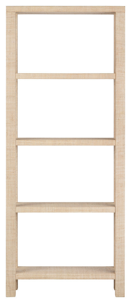 Elevate your space with this beautifully crafted ''tagere, made from wood and fully wrapped in natural raffia material. Its soft beige tone adds warmth and texture, making it a perfect addition to any room. With four fixed shelves, this piece provides ample storage or display space for books, decor, or collectibles. Designed for convenience, it comes fully assembled and ready to use, combining functionality with a refined, organic aesthetic