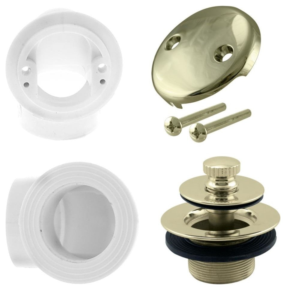 This Schedule 40 PVC plumber''s pack included the two hole top elbow, coarse thread bottom elbow, metal overflow cover and pull & drain strainer and closure. Just what a plumber needs - no tee or PVC pipe is included. 1-1/2 in. Pull & Drain Style Drain. Two Hole overflow faceplate. PVC Top Elbow and Shoe Elbow Included. Heavy Duty Metal Construction. Tubing and Tee Not Included.