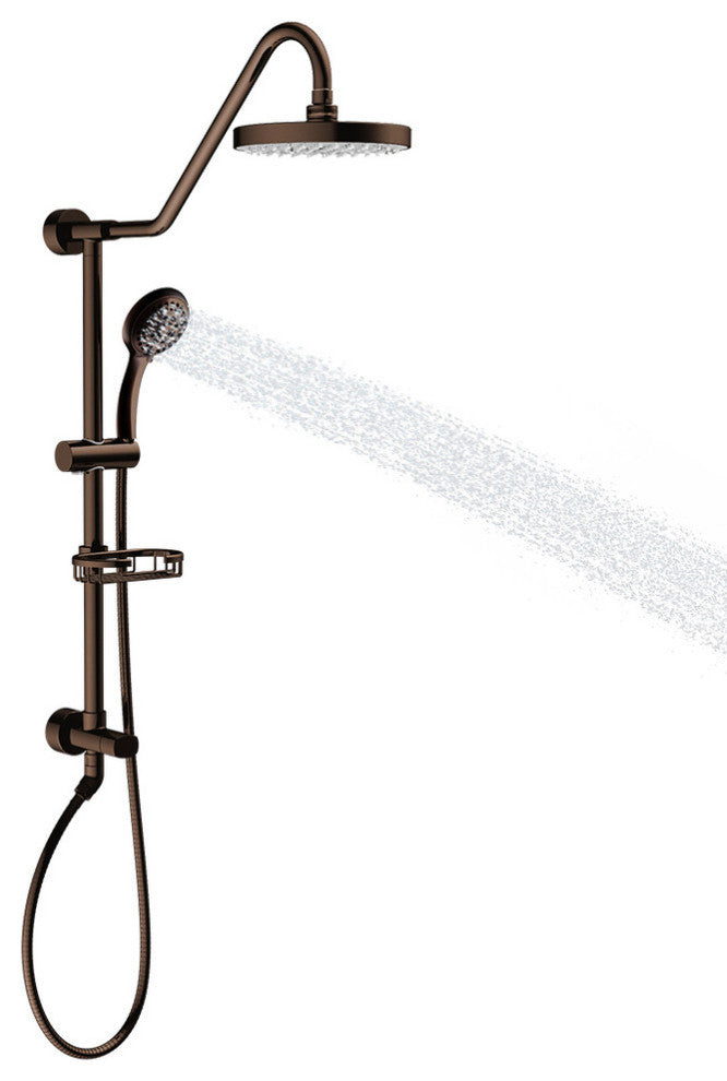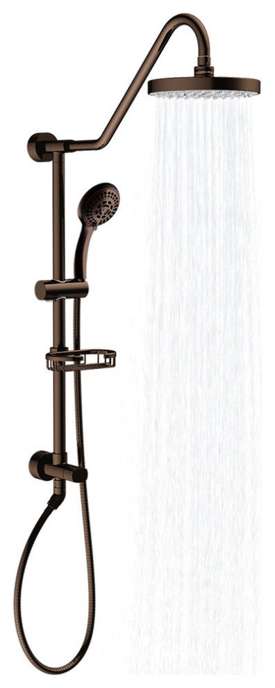 The Kauai Rain Shower System is brilliantly simple! Designed to use your existing valve, it replaces the old showerhead with an elegant rain showerhead and multi-function hand shower. The integrated brass slide bar allows adjustable height control for the hand shower and brass soap dish while providing a conveniently located diverter for switching functions. The soothing rain showerhead and multi-function handheld can be used separately or together for a multitude of spray combinations. Available in chrome, Brushed-Nickel or Oil-Rubbed bronze to match any decor. Typical install is less than 1 hour-even for the do it yourselfer. It simply connects to the water supply at your existing showerhead location and uses your existing hot/cold shower valve. This Shower Spa does not come with a hot/cold mixing valve, please refer to the Tru-Temp valve (Model Number3001-RIV-PB) if you are remodeling and need a valve.Surface mounted and completely pre-plumbed, easily retrofit your existing shower without a remodel8" Rain showerhead with soft tips to clear mineral buildup for long lasting performanceBrass slide bar, soap dish, diverter and shower armFive-function hand shower with 59" double-interlocking stainless steel hoseBrass wire soap dish keeps soap handyConvenient diverter location makes it easy to select functions for all heightsRub tips clean with Spray Straight technologyAdjust height of hand shower and soap dish with integrated slide bar45 Degree adjustable connection prevents hand shower hose from interfering with mixing valveSimply replaces your existing showerhead/shower armCUPC approved shower systemBackflow protection in the hand shower hose1/2" NPT Brass nipple connectorFlow Rate: 1.8 GPM/6.814 LPM Shower System36.25"H x 8"W x 23.75"DColor and Finish: Oil-Rubbed BronzeMaterials: Brass, ABSDominant Material: BrassValve Included: NoCUPC approved Unit: YesDiverter Location: IntegratedShower Arm Reach: 20"Showerhead Width: 8"Showerhead Shape: RoundShowerhead Functions: Single FunctionShowerhead Spray Pattern: RainShowerhead Material: ABSHand Shower: Multi FunctionHand shower Number of Functions: 5Hand shower Spray Functions: Jet/Wide/Wide and Jet/Massage/Wide and MassageHand shower Head Diameter: 4.5"Hand shower Head Material: ABSHand Shower Hose Length: 59"/150cmHand Shower Wall Mount: NoSlide Bar Included: Yes