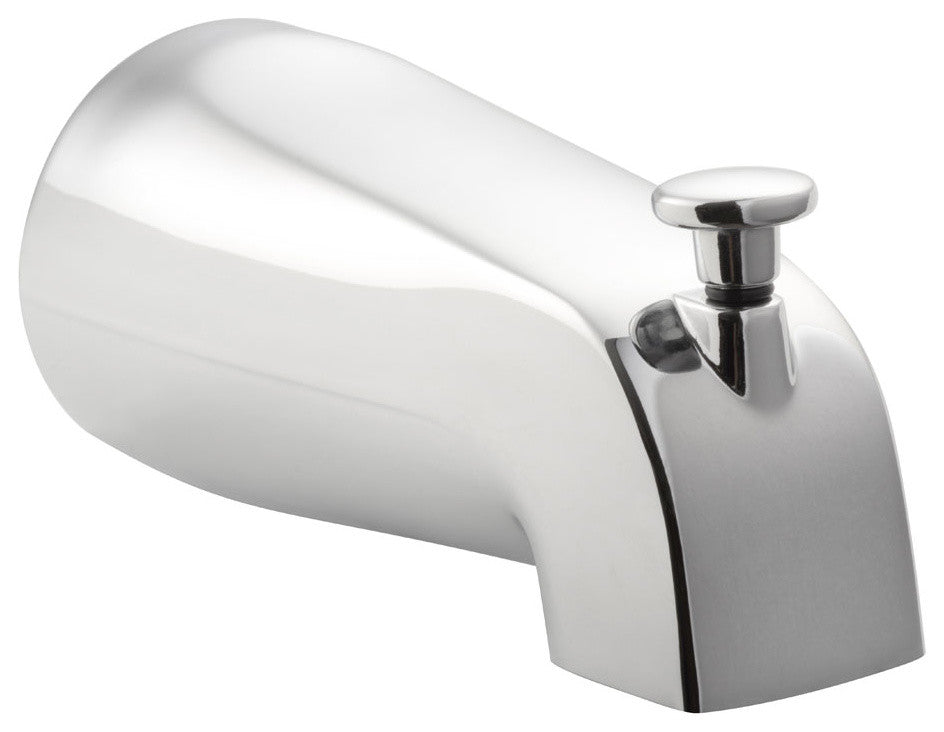 The Pulse Shower Spas Tub Spout compliments any retrofit shower head and mixing valve trim. It is a perfect fit for your new construction or remodel. With a conveniently located diverter at the top of the spout you can easily switch between the tub spout and overhead shower. The traditional look of this tub spout completes the finished look of your new shower or bath.Replaces your tub spout valve in minutesAll brass materialConveniently located diverterNPT Female ConnectionColor and Finish: ChromeMaterials - BrassDominant Material - BrassProduct Size(inches) - 2.5"H x 2.5"W x 5.5"DNPT Female ConnectionManufacturer''s lifetime limited warrantyValve Included: NoDiverter Location: IntegratedHandshower Number of Functions: 0Hand Shower Wall Mount: NoSlide Bar Included: NoBody Jets Included: NoBody Jet Quantity: 0