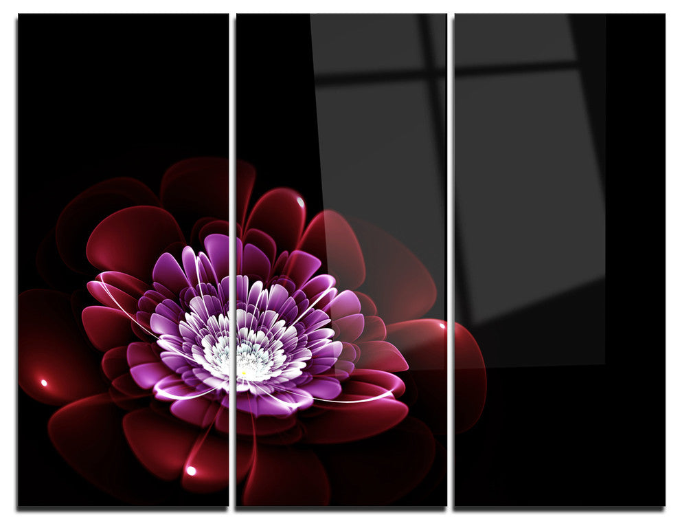 "Purple Abstract Fractal Flower" Digital Metal Wall Art, 3 Panels, 36"x28"