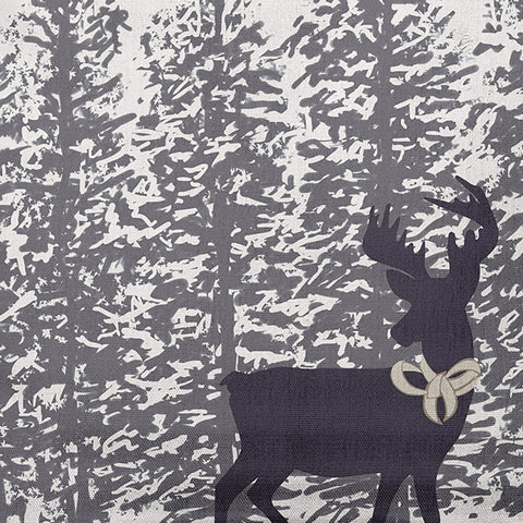 Purple-Grey Reindeer Through the Woods Polyester Throw Pillow, 16" x 16"