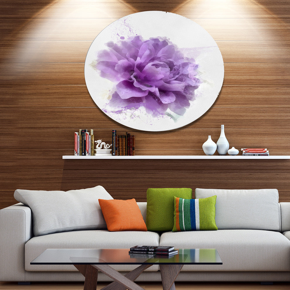 Bring Contemporary Abstraction to your home with this large Circle Metal wall art. This Purple Rose Watercolor Illustration Metal Artwork makes it the focal point of any room or office.