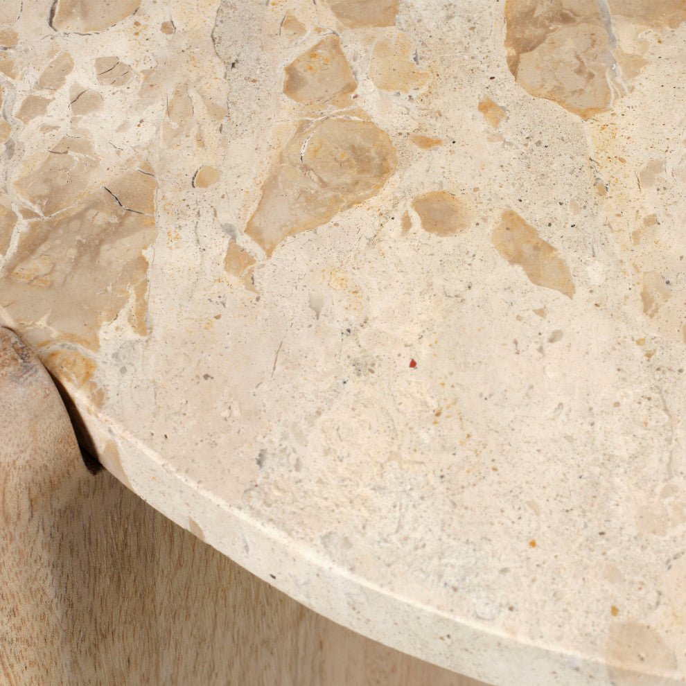 The tendua stone used to top these tables has stood the test of time. The legs are formed of mango wood in a soft finish that perfectly coordinates with the stone tops. With a decidedly organic feel, these accent pieces celebrate the textures and intricacies of their upscale and sustainable materials and the skills of the artisans who craft them. Crafted of Mango Wood and Tendua StoneColor and markings will varyProtective End CapsIndoor Use OnlyAlways use coasters to protect furniture surfaceMade of Natural stone, Stone may vary in color and veiningTop Dimensions: 0.75"H x 18"W x 18"DFloor Clearance: 23"HLeg Dimensions: 24"H x 5.5"W x 1.5"DDistance between legs (front to back): 7"Distance between legs (side to side): 7"Legs are removableDoes not have bar finishWeight Capacity: 50 LbsNot Damp RatedCare Instructions: Clean dust with a soft cotton cloth. Spills to be blotted clean immediately.