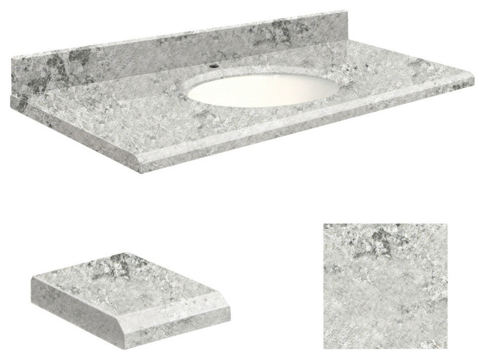 Transolid engineered quartz is produced from 93% quartz under extreme high pressures to yield a top that is hard, stain and heat resistant with a consistent color throughout. Transolid quartz tops never need sealing, polishing or reconditioning and are practically care-free. They are exceptionally hard, making them resistant to cracks, chips, scratches and stains for years of trouble-free beauty. All include an undermount oval china bowl and 4-in loose backsplash.