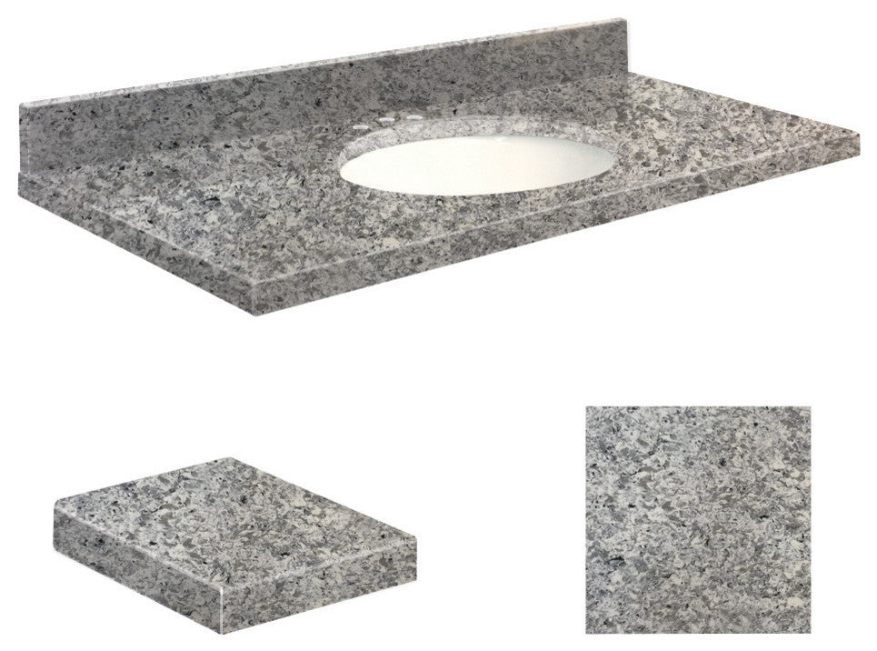 Transolid engineered quartz is produced from 93% quartz under extreme high pressures to yield a top that is hard, stain and heat resistant with a consistent color throughout. Transolid quartz tops never need sealing, polishing or reconditioning and are practically care-free. They are exceptionally hard, making them resistant to cracks, chips, scratches and stains for years of trouble-free beauty. All include an undermount oval china bowl and 4-in loose backsplash.