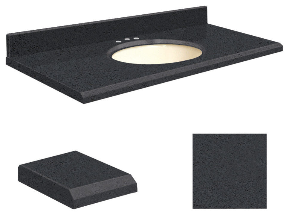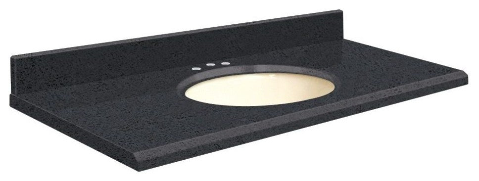 Quartz 31"x19" Vanity Top, Biscuit Bowl, Black Luxe, 8" Offset