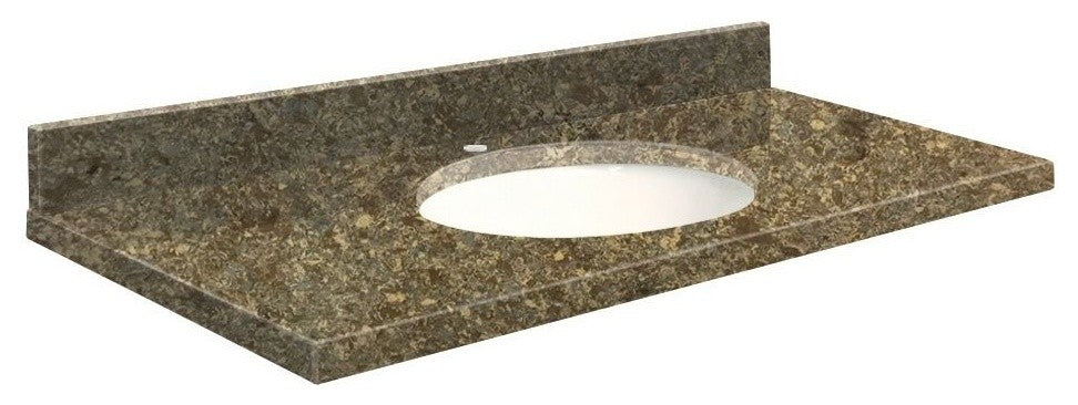 Transolid engineered quartz is produced from 93% quartz under extreme high pressures to yield a top that is hard, stain and heat resistant with a consistent color throughout. Transolid quartz tops never need sealing, polishing or reconditioning and are practically care-free. They are exceptionally hard, making them resistant to cracks, chips, scratches and stains for years of trouble-free beauty. All include an undermount oval china bowl and 4-in loose backsplash.