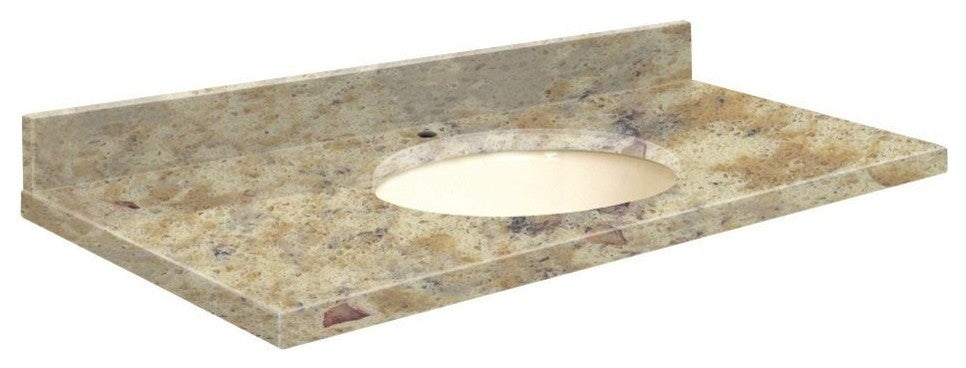 Quartz 37"x19" Vanity Top, Single Faucet Hole, Trail, Biscuit Bowl