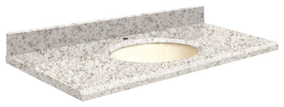Quartz 37"x22" Vanity Top, Single Faucet Hole, Almond Delite, Biscuit Bowl