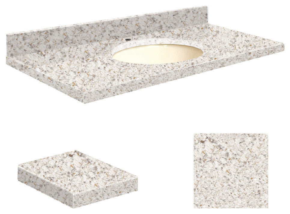 Quartz 43"x22" Vanity Top, Single Faucet Hole, Almond Delite, Biscuit Bowl