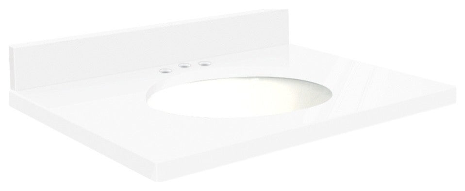 Transolid engineered quartz is produced from 93% quartz under extreme high pressures to yield a top that is hard, stain and heat resistant with a consistent color throughout. Transolid quartz tops never need sealing, polishing or reconditioning and are practically care-free. They are exceptionally hard, making them resistant to cracks, chips, scratches and stains for years of trouble-free beauty. All include an undermount oval china bowl and 4-in loose backsplash.
