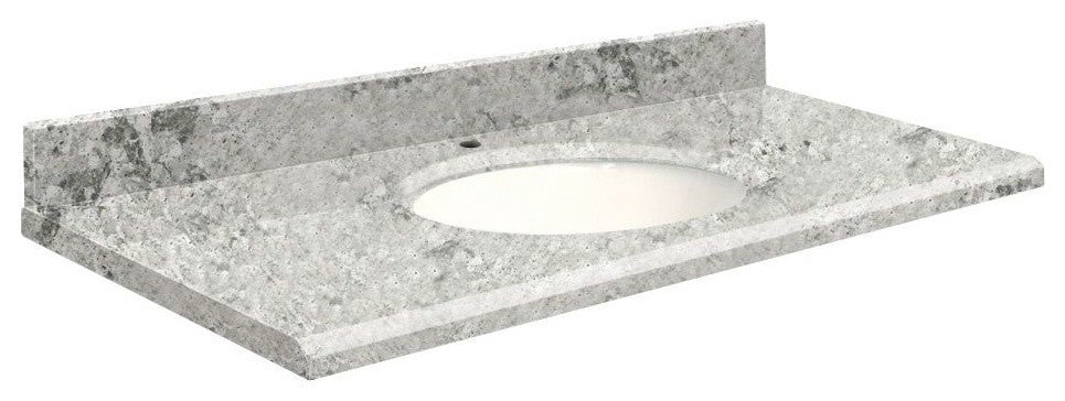 Transolid engineered quartz is produced from 93% quartz under extreme high pressures to yield a top that is hard, stain and heat resistant with a consistent color throughout. Transolid quartz tops never need sealing, polishing or reconditioning and are practically care-free. They are exceptionally hard, making them resistant to cracks, chips, scratches and stains for years of trouble-free beauty. All include an undermount oval china bowl and 4-in loose backsplash.