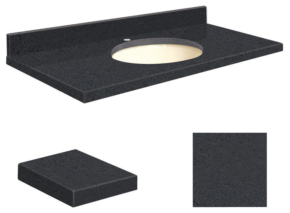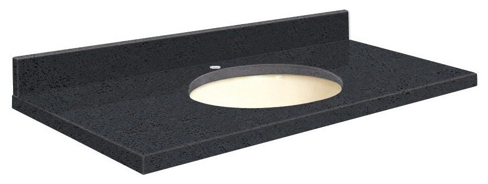 Quartz 49"x19" Vanity Top, Single Faucet Hole, Black Luxe, Biscuit Bowl
