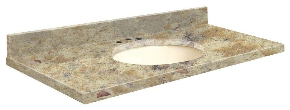 Transolid engineered quartz is produced from 93% quartz under extreme high pressures to yield a top that is hard, stain and heat resistant with a consistent color throughout. Transolid quartz tops never need sealing, polishing or reconditioning and are practically care-free. They are exceptionally hard, making them resistant to cracks, chips, scratches and stains for years of trouble-free beauty. All include an undermount oval china bowl and 4-in loose backsplash.