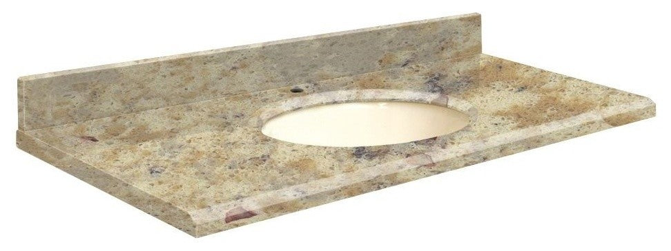 Quartz 49"x22" Vanity Top, Single Faucet Hole, Trail, Biscuit Bowl