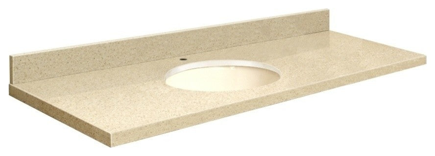 Quartz 61"x22" Vanity Top, Single Faucet Hole, Nature's Path, Biscuit Bowl
